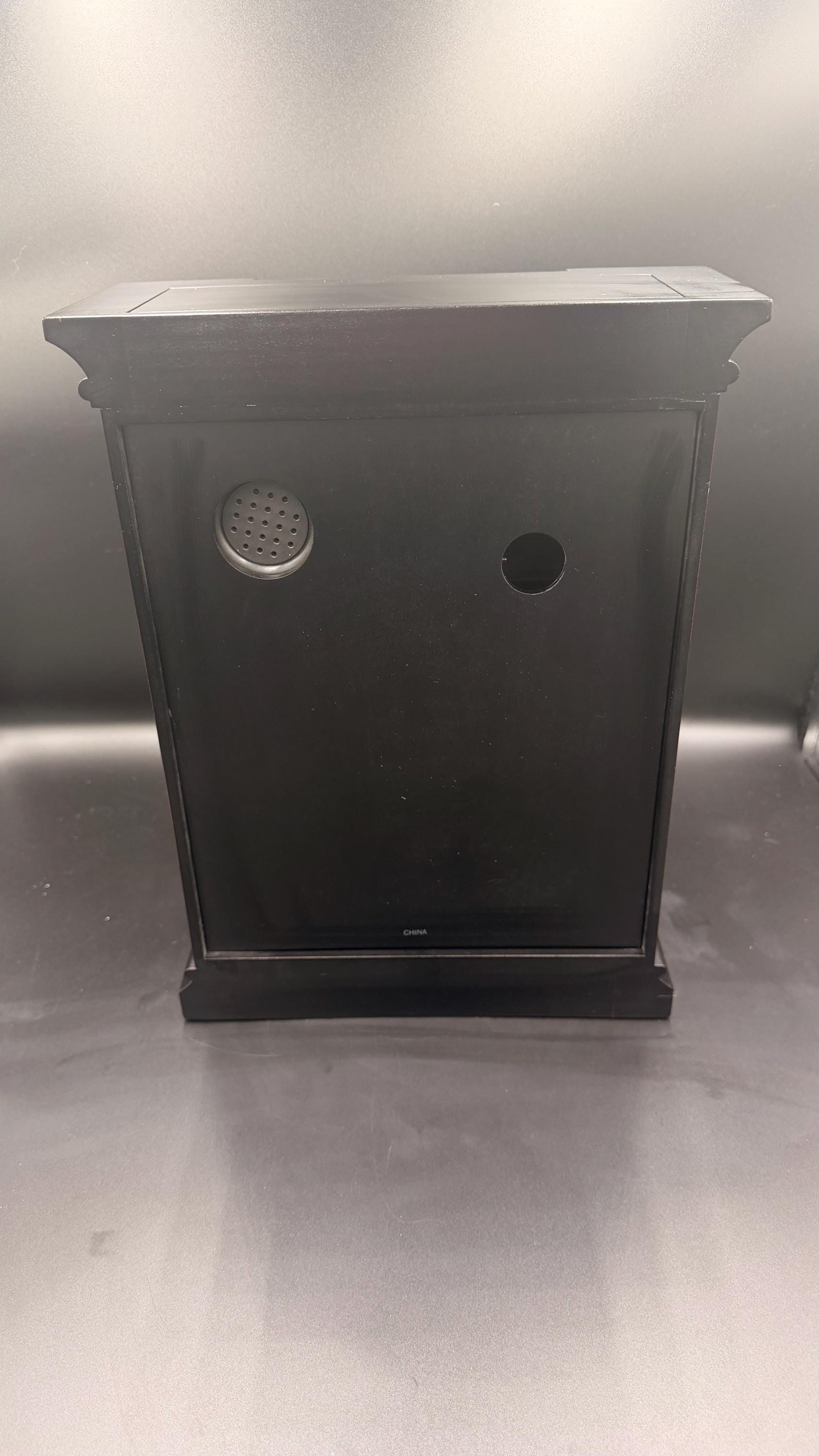 Quartz, battery-operated, single-chime movement plays Westminster melody on the hour and counts the hour. Automatic nighttime chime shut-off. Requires three AA sized batteries.