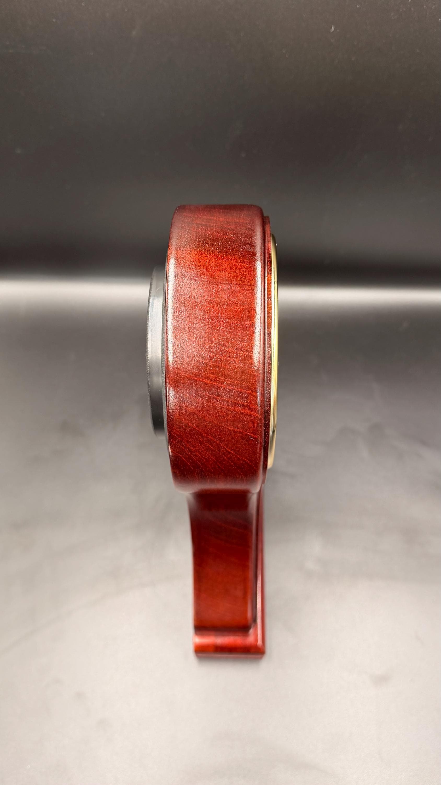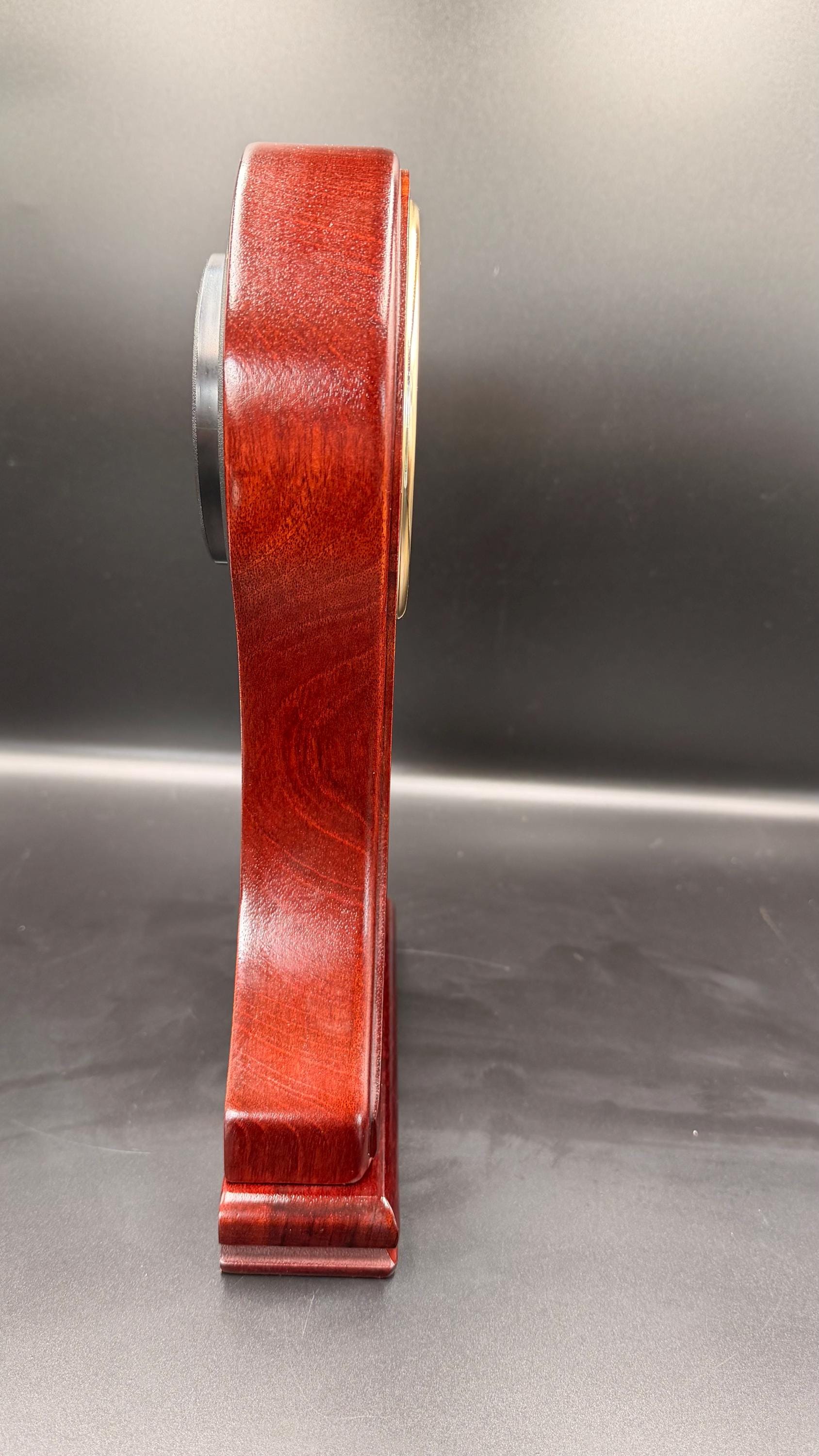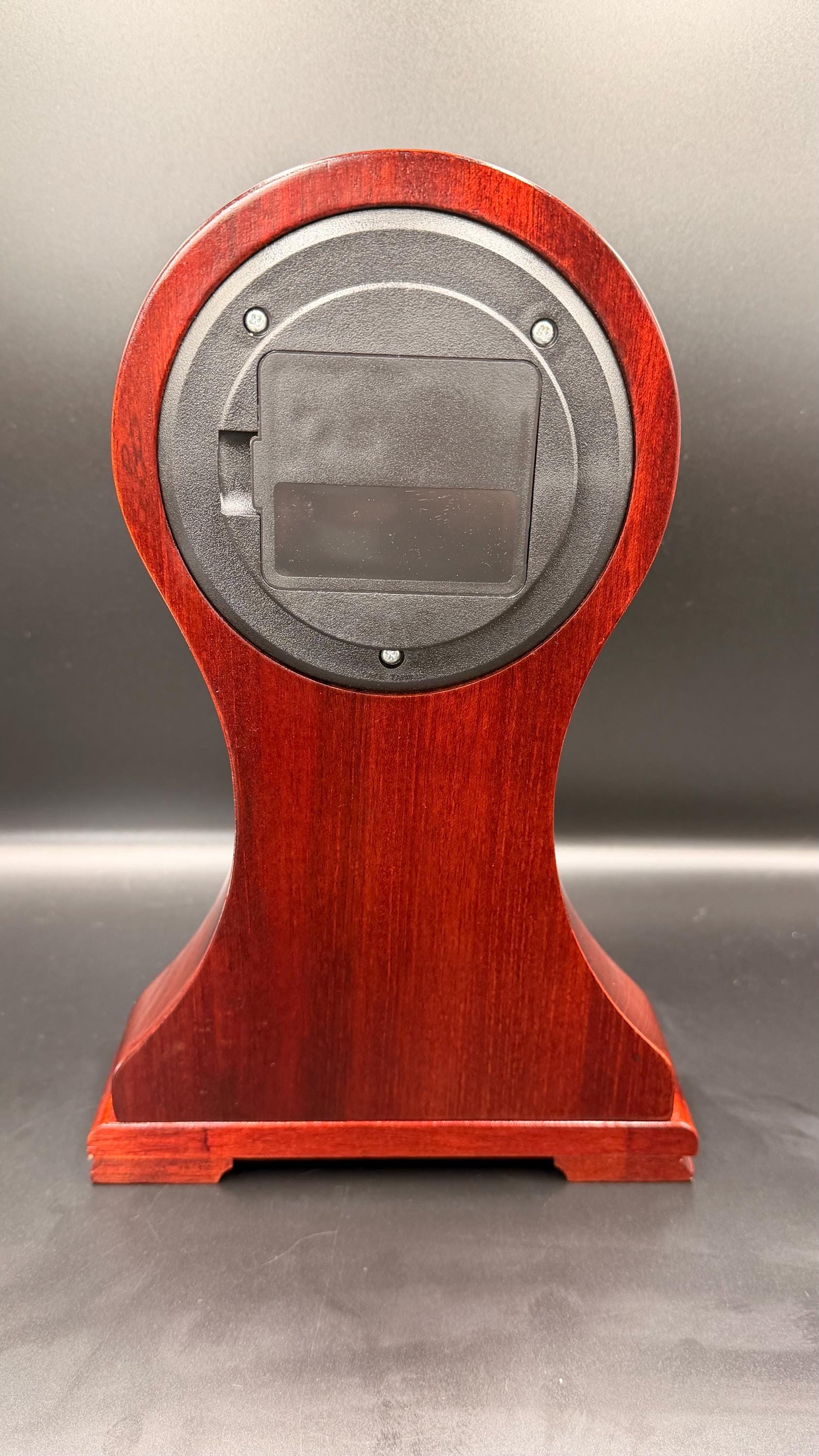 Add timeless elegance to your home or office with this beautiful Linden mantel clock, featuring a rich mahogany-tone wood case and a classic Roman numeral dial. The graceful silhouette and refined inlay design give this piece the appearance of a traditional mechanical mantel clock while offering the effortless accuracy of quartz timekeeping.