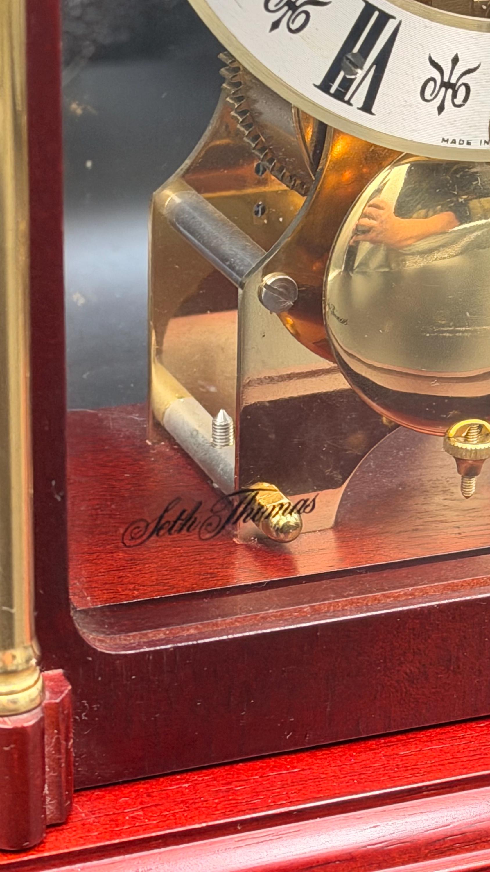 This is a quality mechanical clock built during the era when Seth Thomas partnered with Hermle of Germany, known for reliability, precision, and enduring craftsmanship.